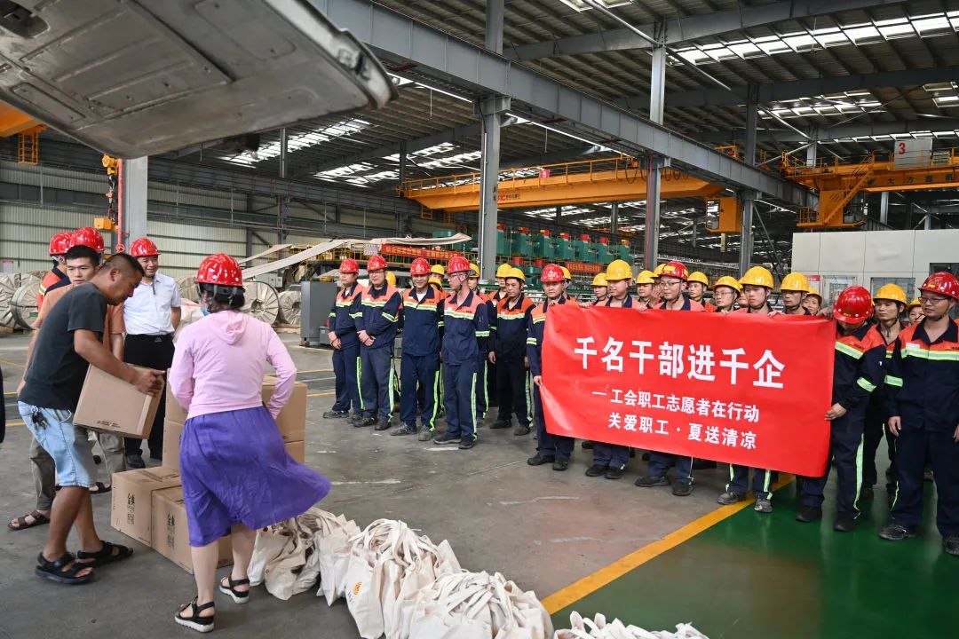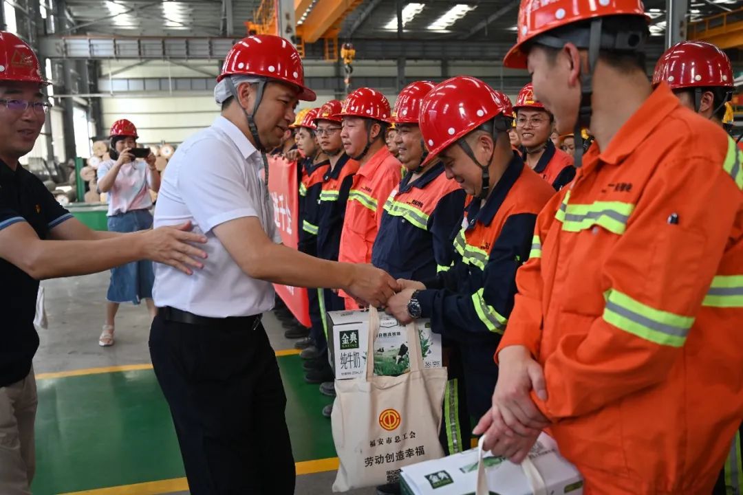 近日,持續(xù)的高溫給奮戰(zhàn)在一線的員工們帶來了嚴峻的考驗,他們堅守在不銹鋼生產(chǎn)崗位,揮灑汗水,也牽動著大家的心。7月26日,福安市總工會結合“千名干部進千企”活動部署,赴青拓集團有限公司開展了“關愛職工 夏送清涼”慰問活動。福安市總工會黨組書記、常務副主席蘇振鈴,福安市總工會黨組成員、副主席王向東帶領慰問小組及慰問物資,在青拓集團黨委書記、行政總經(jīng)理鐘盛江及福安青拓冷軋科技有限公司副總經(jīng)理蘭亮的陪同下,為堅守在一線的員工送上一份清涼。