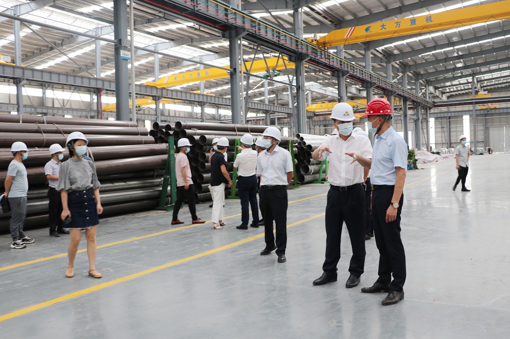 薛鶴峰一行還實(shí)地考察了浙江青山鋼管有限公司福建分公司焊管車間、管件車間,參觀了生產(chǎn)線并聆聽相關(guān)人員對(duì)產(chǎn)品流程和工藝的介紹,對(duì)盟信公司所做的努力給予了充分肯定。