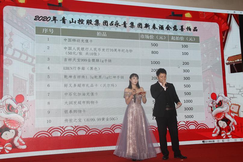 酒會現(xiàn)場,文藝節(jié)目精彩紛呈,抽獎環(huán)節(jié)高潮迭起。青山控股和永青集團年會特色的慈善拍賣環(huán)節(jié)更是把現(xiàn)場氣氛推向了最頂點。據(jù)統(tǒng)計,今年價值5萬多的慈善拍品總共拍出了47萬多元,募集的慈善款比去年增長了近一倍。這些款項會后全部捐給青山慈善基金會用于慈善公益事業(yè)。