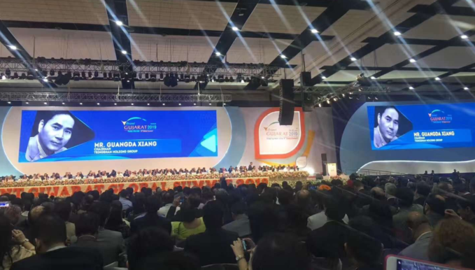 1月18日,第九屆“活力古邦峰會”在印度甘地故鄉(xiāng)古吉拉特邦舉行,印度總理莫迪,古邦首席部長魯巴尼,烏茲別克斯坦總統(tǒng),丹麥總理,捷克總理,日本經(jīng)濟部部長,阿聯(lián)酋環(huán)保部部長,泰國商務(wù)部副部長,納米比亞工業(yè)部長,澳大利亞、荷蘭、南非、摩洛哥、加拿大、法國、挪威等國家官員及代表團,印度信實集團董事長Ambani,TaTa集團董事長,Adani集團董事長等重量級人物出席此次高規(guī)格會議。在峰會上,應(yīng)印度政府邀請,作為在印度將有重大投資計劃的外國企業(yè)代表之一,青山實業(yè)董事局主席項光達出席本次峰會并發(fā)言。