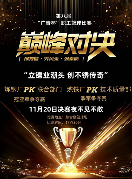 11月20日晚,第八屆“廣青杯”籃球比賽經(jīng)過9天的緊張角逐圓滿結束,廣東廣青金屬科技有限公司300多名員工觀看了冠亞軍決賽。
