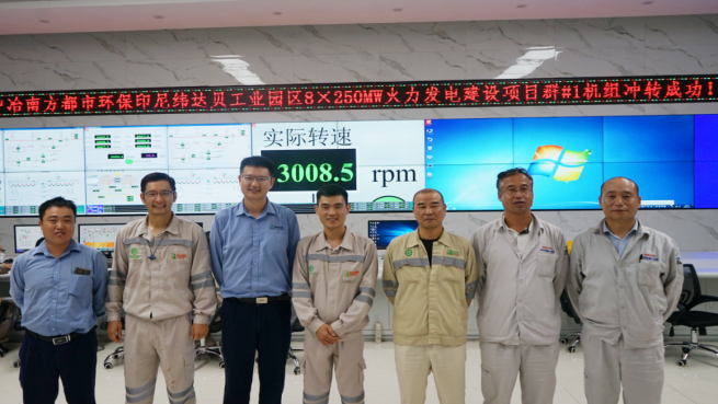 3月8日7時7分,永青集團有限公司董事長項炳和、副總裁何小振,印尼緯達貝工業(yè)園區(qū)分管領(lǐng)導(dǎo)董士虎,外協(xié)施工單位領(lǐng)導(dǎo)以及園區(qū)各部門經(jīng)理共同見證了緯達貝園區(qū)發(fā)電工程項目1# 超臨界燃煤發(fā)電機組并網(wǎng)發(fā)電這一歷史時刻。