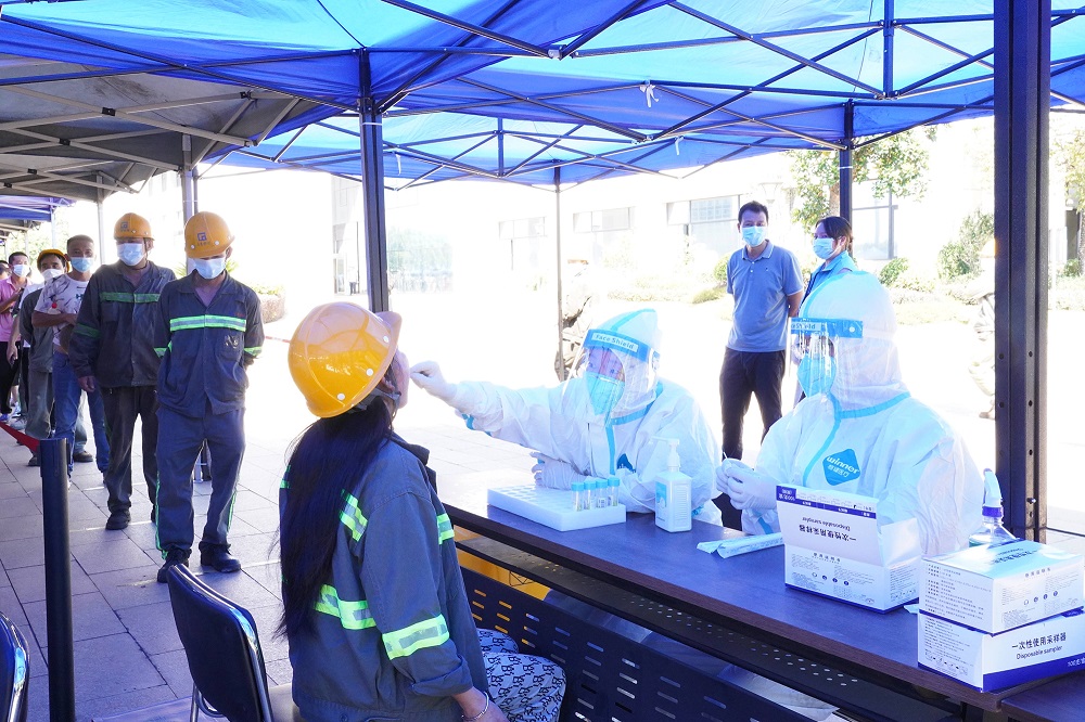 7月9日,陽江發(fā)現(xiàn)1例本土病例,為全力排查風(fēng)險(xiǎn)隱患,守護(hù)員工的生命健康安全,確保公司生產(chǎn)經(jīng)營安全平穩(wěn)運(yùn)行,公司結(jié)合疫情防控形勢新變化,分別于7月11日和7月13日兩次組織全體在崗人員、員工家屬及外協(xié)單位人員開展核酸篩查。