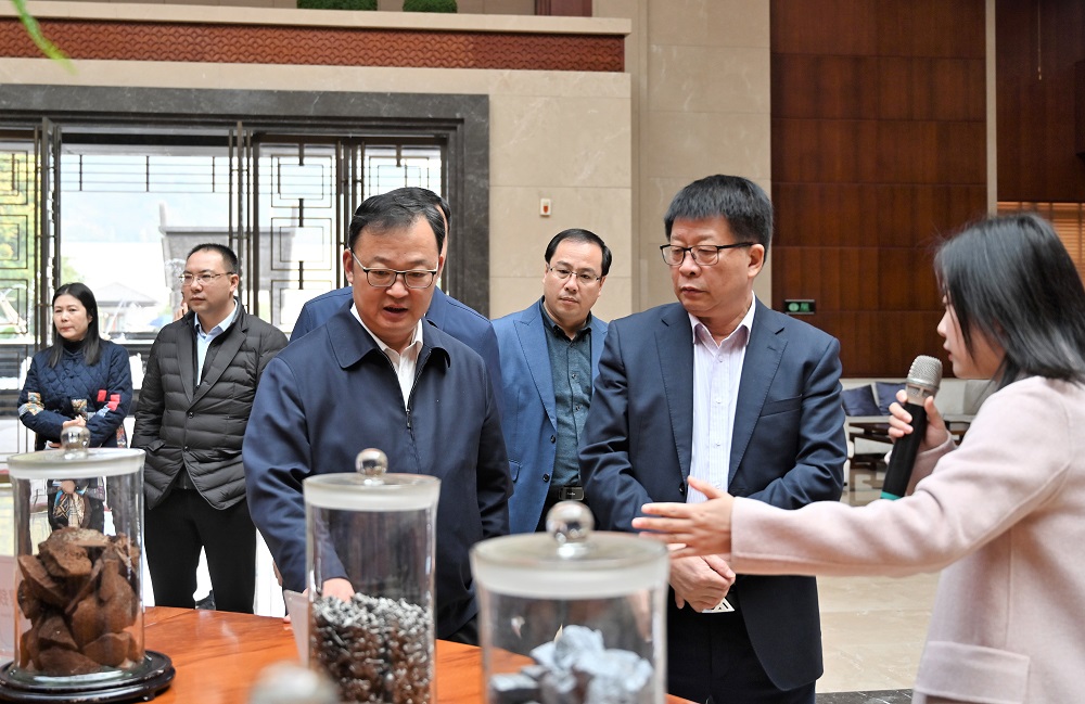 在供銷大廳、研究院、家具展廳,張新懌一行參觀了不銹鋼原材料,不銹鋼鋼坯、棒線材,以及不銹鋼板材制品,近距離體驗筆尖鋼與手撕鋼,并對紅土礦和鉻礦的冶煉開采、QN系列不銹鋼新產(chǎn)品生產(chǎn)及應(yīng)用等產(chǎn)生濃厚興趣。
