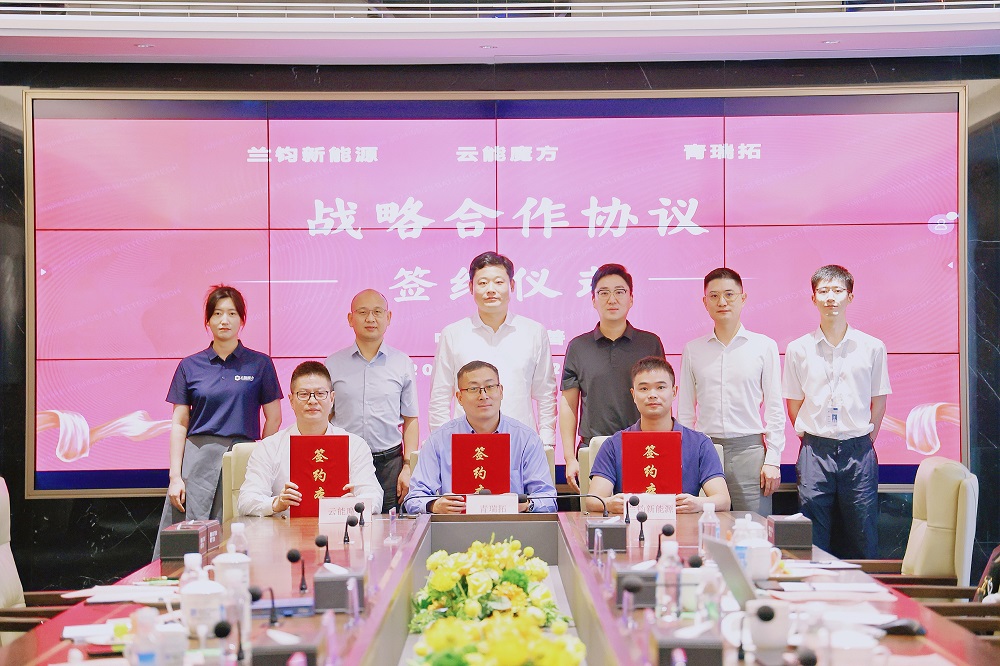 近日,蘭鈞新能源科技有限公司與蘇州云能魔方能源科技有限公司、上海青瑞拓新能源科技有限公司在嘉善基地舉行三方戰(zhàn)略合作簽約儀式,永青科技集團副總裁、蘭鈞新能源董事長馮挺,云能魔方董事長張建興及青瑞拓董事長楊立勇等相關(guān)領(lǐng)導出席見證本次簽約儀式。蘭鈞新能源研究院院長黃海寧、云能魔方總經(jīng)理胡東斌及青瑞拓副總經(jīng)理楊寶林分別代表三方在合作協(xié)議書上簽字。
