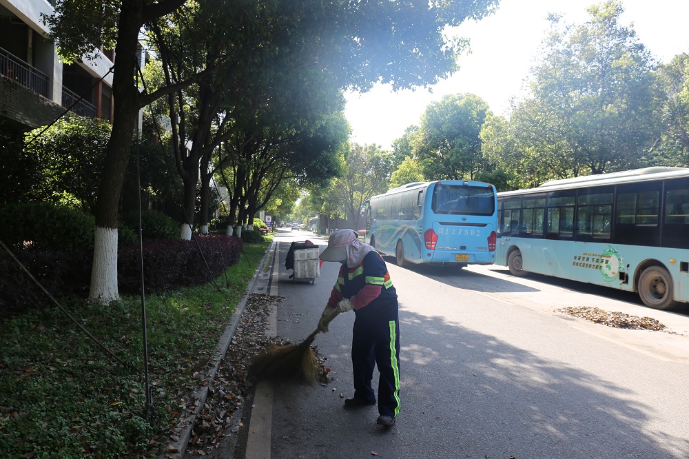 從高處向下看,充滿熱浪的室外,散布著點點身影,長袖,帶帽,躬身,汗滴沾濕了衣衫,一陣微風(fēng)吹過,于他們而言,便是難得的享受。多少次,在車來車往的廠區(qū)道路上看到他們,默默低頭工作是他們平凡的身影,汗水混合著灰塵,流淌在臉頰,是那樣閃爍晶瑩。環(huán)境在他們的手里變得整潔,欣慰的微笑抒發(fā)著質(zhì)樸的心情,他們是誰?他們是廠區(qū)的整潔衛(wèi)士,是道路保潔員。