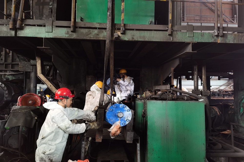 軋線是生產(chǎn)車間的高溫區(qū)域,在室外高溫疊加的情況下,更如烤爐一般。每次帶著客戶參觀,一趟下來都會大汗淋漓。時常能看到一群人,廠服外又套上一層白色防護服,蹲在軋線旁邊作業(yè),他們是青拓輝煌的基石。