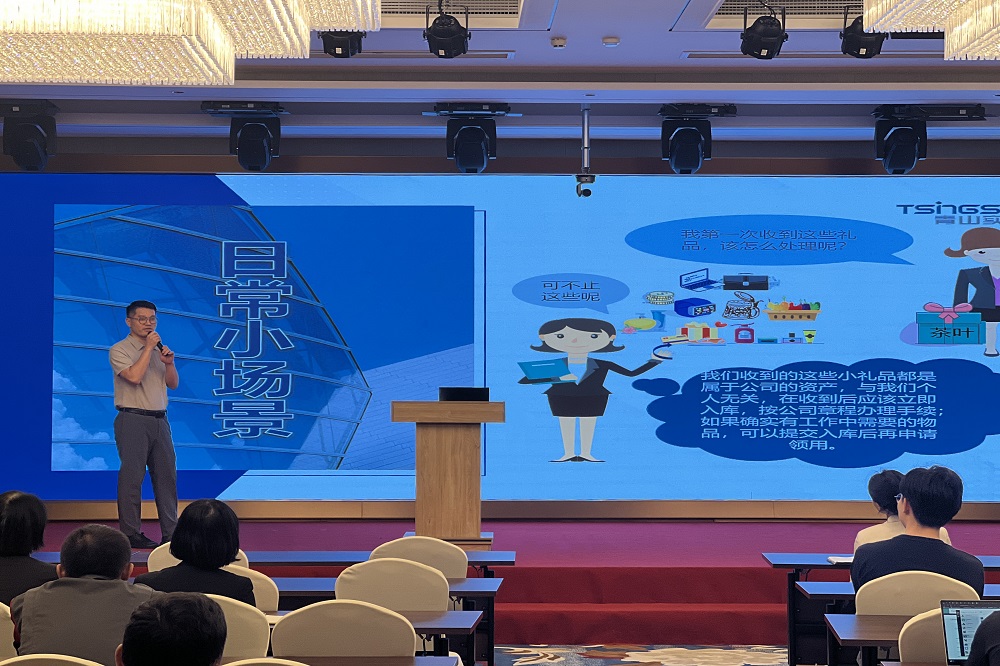 財(cái)務(wù)管理委員會審計(jì)中心汪子建對違反廉潔規(guī)定的危害、后果、如何避免不廉潔行為及禮品來源和入庫流程等方面的內(nèi)容進(jìn)行了詳細(xì)闡述。他強(qiáng)調(diào):作為一名企業(yè)員工,要時(shí)刻繃緊“廉潔弦”,區(qū)分好公司財(cái)產(chǎn)和個(gè)人財(cái)產(chǎn),厘清公司意志和個(gè)人意志,遵守法律法規(guī)和公司的相關(guān)規(guī)定, 積極維護(hù)公司利益。