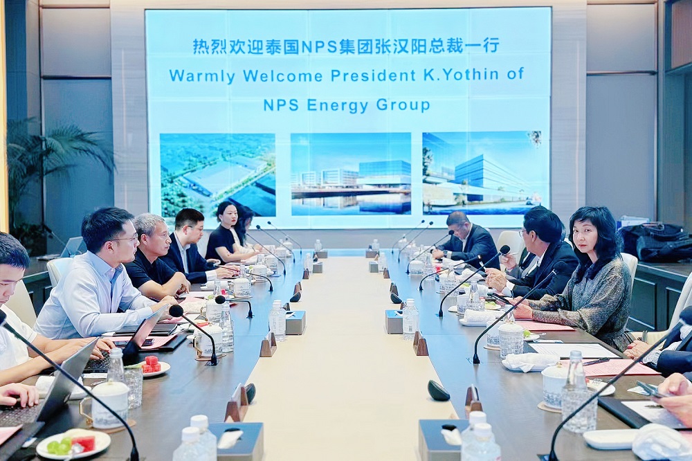 8月8日下午,泰國(guó)NPS集團(tuán)總裁張漢陽(yáng)攜董事會(huì)成員一行到上海青山實(shí)業(yè)總部大樓及青山實(shí)業(yè)旗下的蘭鈞新能源科技有限公司嘉善基地參觀交流。永青科技集團(tuán)董事長(zhǎng)胡曉東、戰(zhàn)略協(xié)同部副總經(jīng)理張奕煒及蘭鈞新能源研究院院長(zhǎng)黃海寧等相關(guān)領(lǐng)導(dǎo)給予熱情接待。
