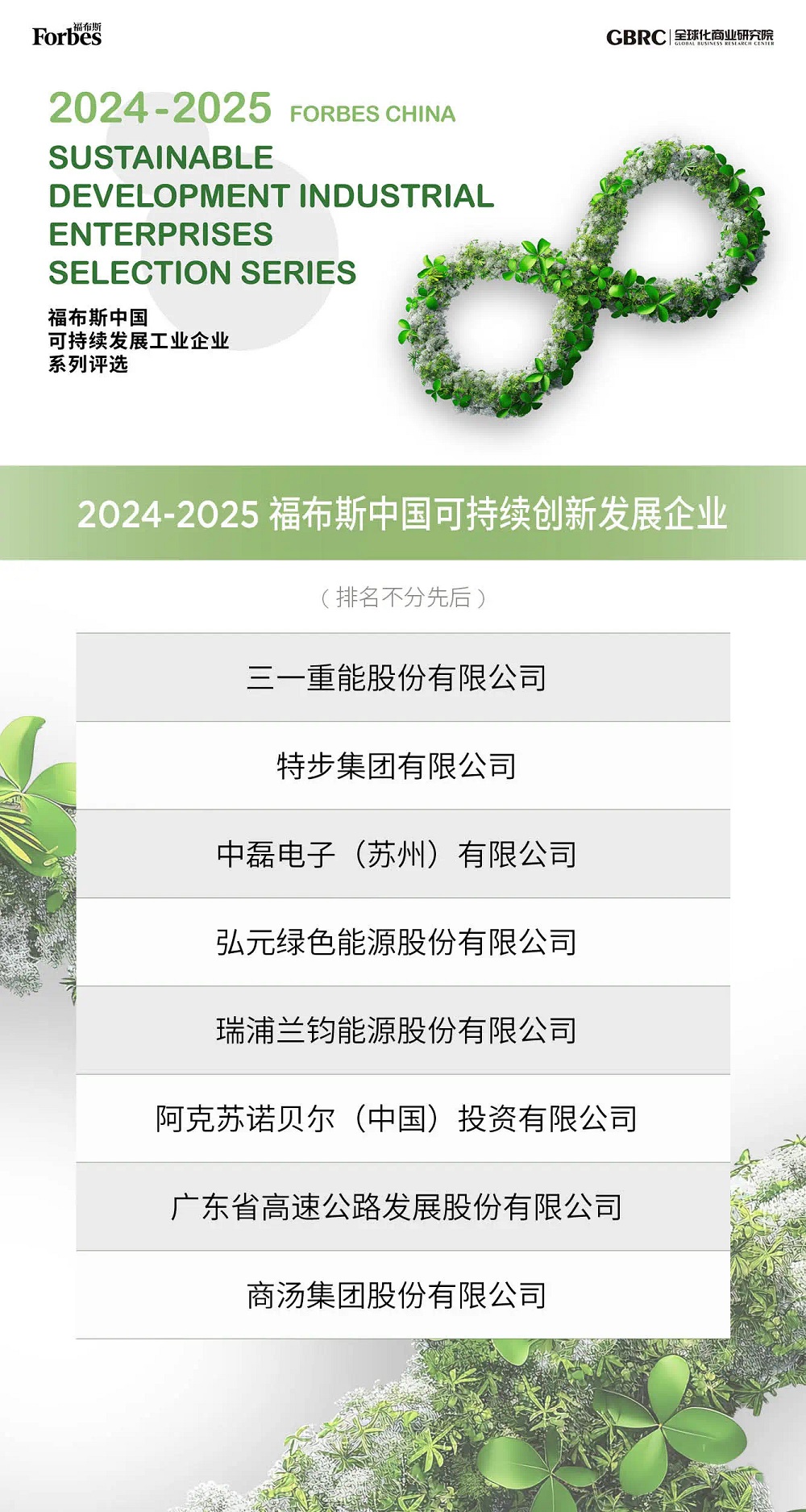 福布斯中國可持續(xù)發(fā)展工業(yè)企業(yè)系列評選旨在探尋中國工業(yè)企業(yè)在 “雙碳” 目標(biāo)與新質(zhì)生產(chǎn)力形成指引下的最新成就,評估企業(yè)在可持續(xù)發(fā)展管理體系、轉(zhuǎn)型技術(shù)創(chuàng)新、可持續(xù)發(fā)展實踐等維度的綜合表現(xiàn)。該評選由 GBRC 全球化商業(yè)研究院和 TüV 南德參與支持,是衡量企業(yè)可持續(xù)發(fā)展能力的重要標(biāo)桿。