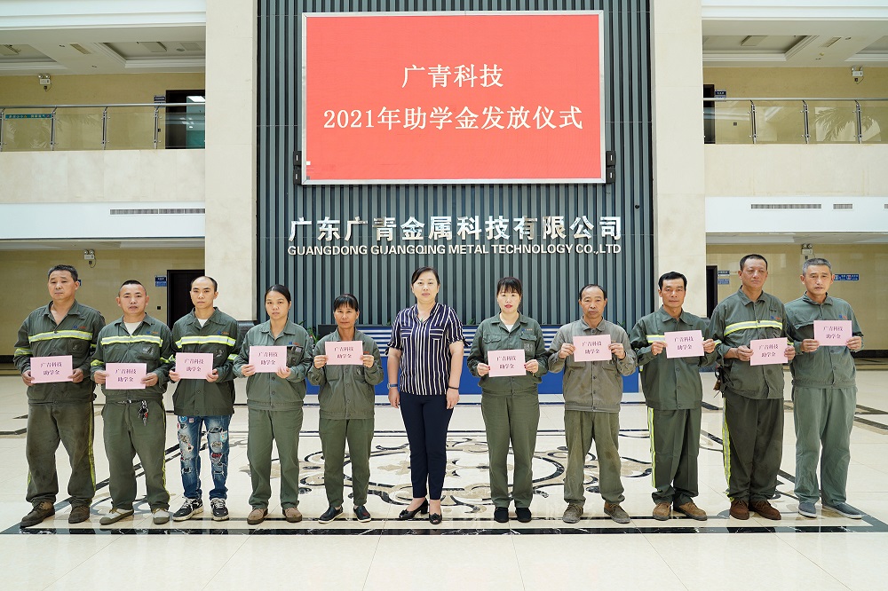 8月31日,廣東廣青金屬科技有限公司工會在公司辦公樓大堂舉辦了助學金發(fā)放儀式。公司黨委副書記、工會主席王大慶為12個困難職工家庭發(fā)放24000元助學金,幫助困難職工減輕子女教育費用負擔,讓同學們能安心學習,以優(yōu)異的成績報答父母、報效祖國。