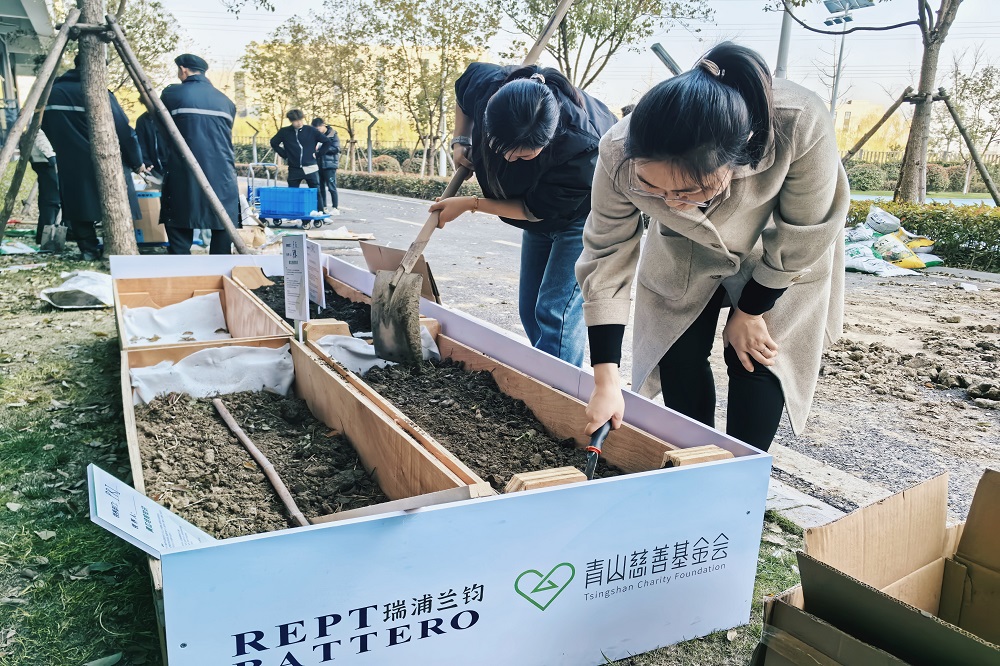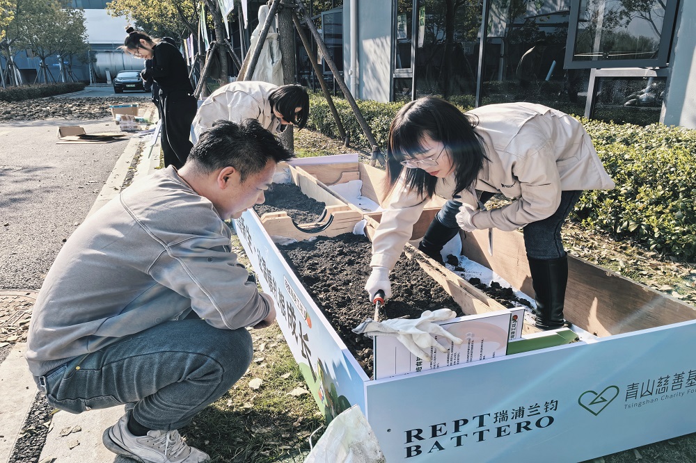 隨后,石江珠與趙棟明共同種下象征承諾的“時間膠囊”——首株有機菜苗。未來,嘉善基地各部門將分片種植蔬菜,收獲的作物將用于慈善活動,實現(xiàn)“生態(tài)新生、愛心新生、希望新生”三重價值。