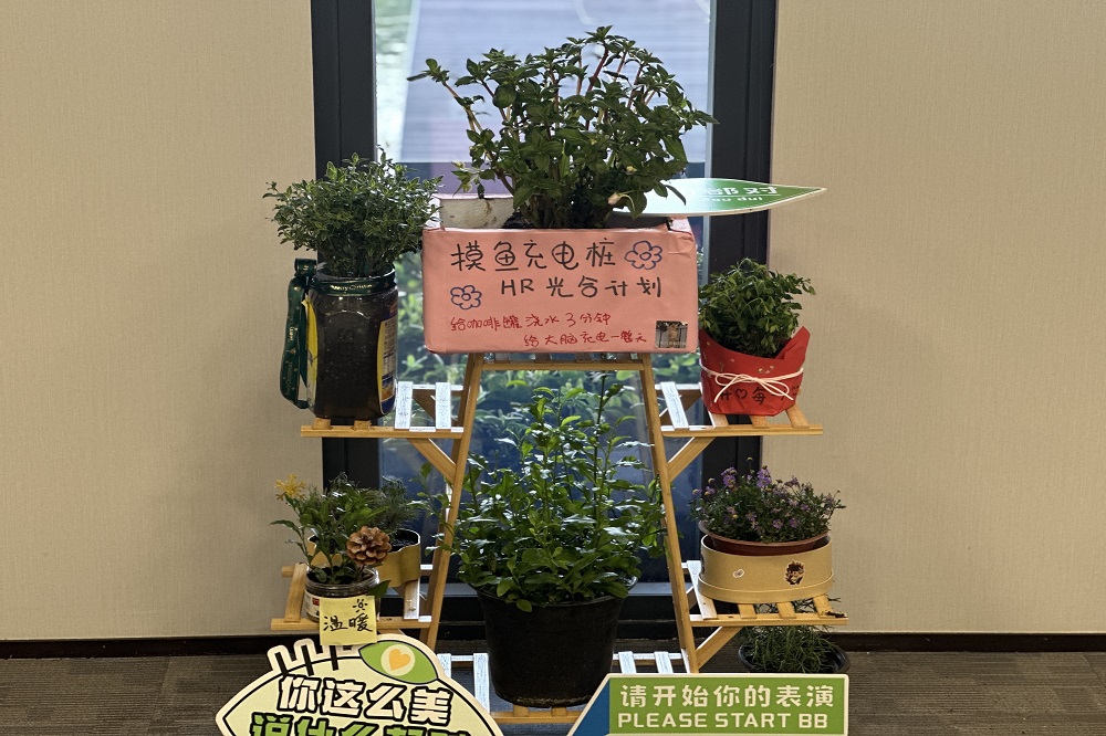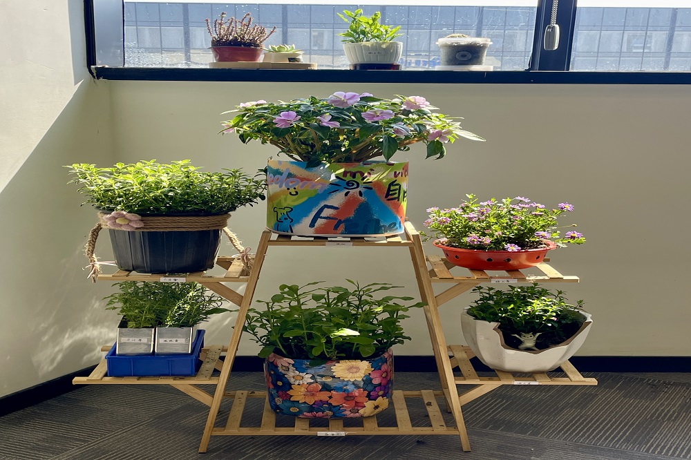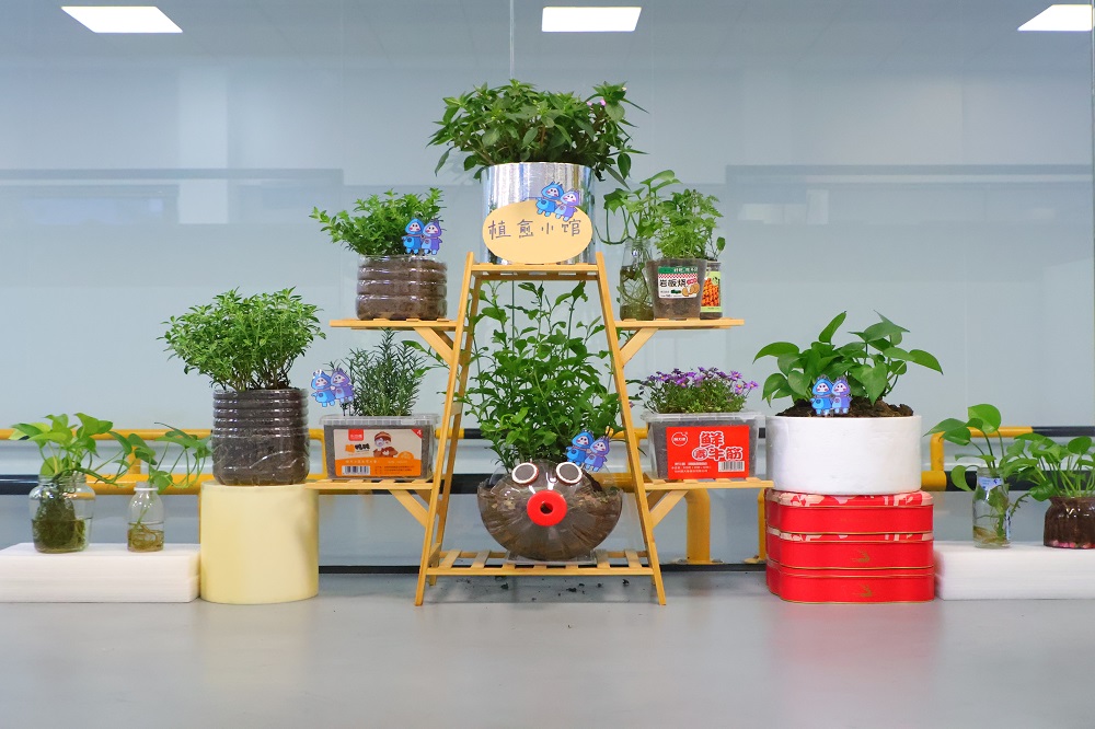 PRJ部門專屬小花坊——“植愈小館”,以工藝之名,賦予廢棄品新生。在這里,食品包裝盒、塑料瓶、泡沫箱等被賦予了新的生命,化作一個個再生花盆。鈞寶的精美手工畫裝飾其上,猶如點睛之筆,為花盆增添了一抹文化韻味,每一盆都是對工藝與環(huán)保的完美融合?!爸灿○^”不僅是部門綠色文化的縮影,更是我們傳遞“變廢為寶,循環(huán)再生”理念的生動實踐。在這里,廢棄不再是負(fù)擔(dān),而是創(chuàng)意與綠色的源泉,每一盆綠植都在訴說著“再生”的故事。