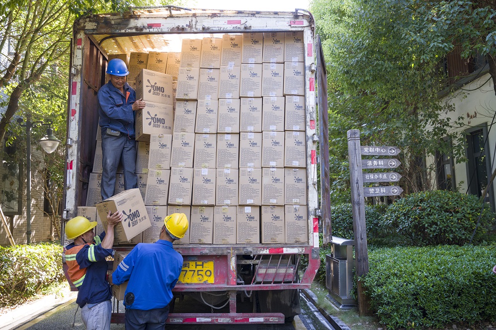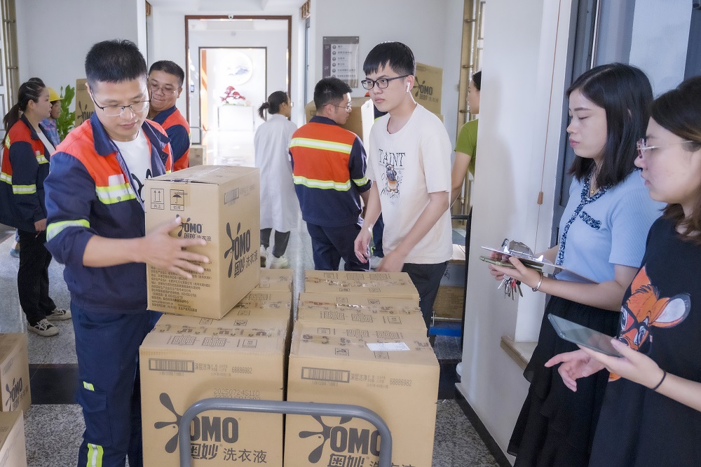 8月9日上午,滿載高溫福利的卡車駛?cè)肭嗤貓@區(qū),一箱箱承載著集團“親切關(guān)懷”的物資有序卸下。在各部門的幫助下,800余箱貨物在上午11時左右全部分配轉(zhuǎn)運完畢。本次高溫福利包括洗衣液、沐浴露等日常用品。員工們臉上洋溢著喜悅的笑容,紛紛向公司表示感謝。