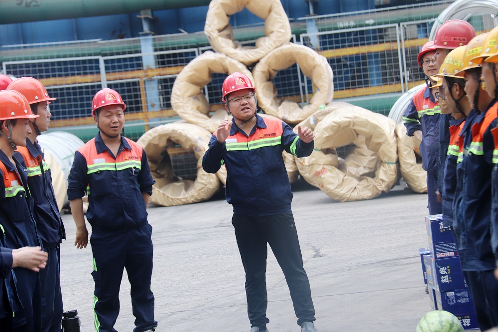 8月10日下午,浙江青山鋼管有限公司工會組織開展了為一線生產(chǎn)員工“夏日送清涼”慰問活動,無縫管事業(yè)部總經(jīng)理陳光森代表公司為高溫天氣下堅守崗位的一線生產(chǎn)員工送上“清涼福利”。