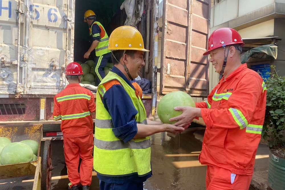 王新教將一個個西瓜送到各個生產(chǎn)車間一線員工手中。副總經(jīng)理劉晶對一線員工不懼酷暑、堅守崗位、盡職盡責(zé)的工作精神給予高度肯定,并再三叮囑員工做好防暑降溫措施,要求各部門在生產(chǎn)工作中,要把員工身心健康安全放在第一位。