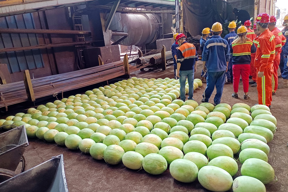 8月2日15時,福建青拓實業(yè)股份有限公司總經(jīng)理孫勇偉,副總經(jīng)理李學(xué)強、袁少平帶領(lǐng)各生產(chǎn)部門部長先后赴鎳鐵部、精煉部、高線部、酸洗部和新材料建設(shè)項目等部門進行高溫慰問,為堅守崗位的一線員工送去西瓜、飲料等慰問品。