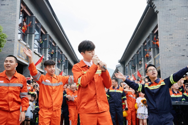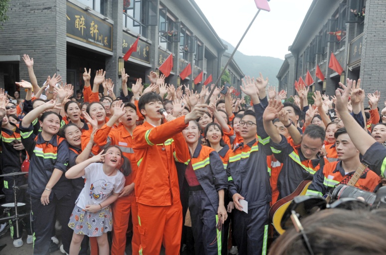 9時(shí),嘉賓陳立農(nóng)和青拓樂(lè)隊(duì)成員在青山街表演,以快閃的形式演唱了歌曲《少年》。歡快躍動(dòng)的旋律響起,大家循著歌聲紛紛加入合唱,并與陳立農(nóng)熱情互動(dòng)。紅旗隨風(fēng)飄揚(yáng),員工們歡呼雀躍,大聲放歌,一如從前那個(gè)少年,整個(gè)青山街徜徉在《少年》的輕快歌聲中。
