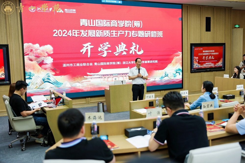 6月14日上午,由溫州市工商業(yè)聯(lián)合會、青山國際商學(xué)院(籌)和浙江大學(xué)青山商學(xué)高等研究院共同舉辦的“2024發(fā)展新質(zhì)生產(chǎn)力專題研修班”開學(xué)典禮在青山學(xué)苑順利舉行。溫州市委統(tǒng)戰(zhàn)部副部長、市工商聯(lián)黨組書記錢素文,青山控股集團(tuán)有限公司總裁孫建芬和來自溫州市40余家創(chuàng)新成長型企業(yè)家學(xué)員參加了此次開學(xué)典禮。北京大學(xué)、浙江大學(xué)原校長林建華教授作為特邀嘉賓為學(xué)員做開學(xué)訓(xùn)導(dǎo)。開學(xué)典禮由青山國際商學(xué)院(籌)常務(wù)副院長葉建亮教授主持。