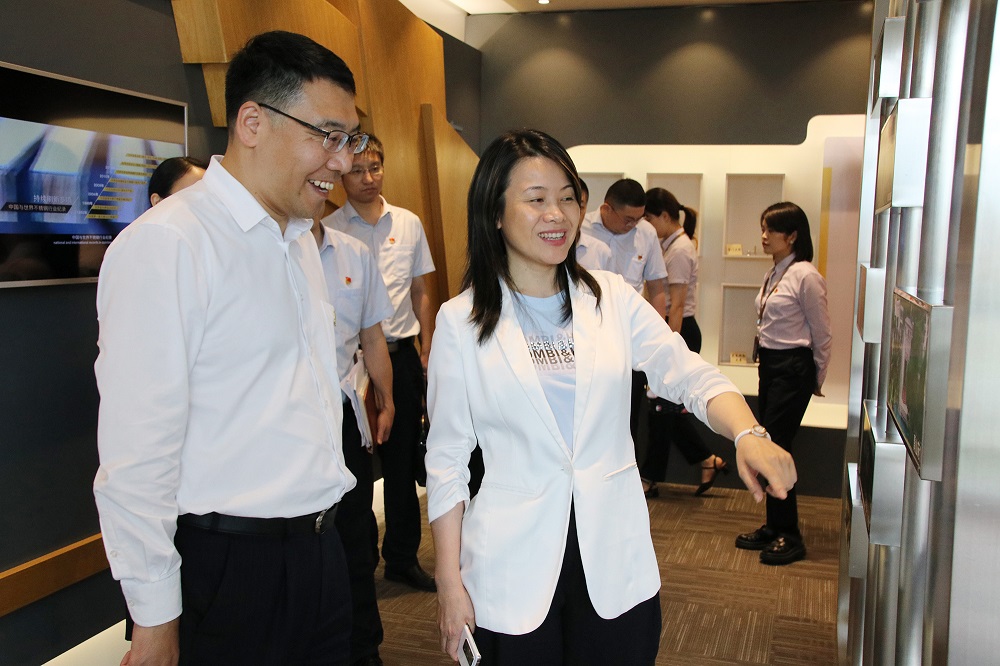 會(huì)前,孫建芬還陪同傅惠平一行參觀了青山總部大樓黨群活動(dòng)室和青山慈善展廳。