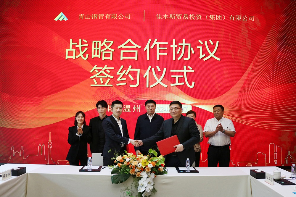 5月7日,青山鋼管有限公司與佳木斯貿(mào)易投資(集團(tuán))有限公司在溫州市舉行了戰(zhàn)略合作協(xié)議簽約儀式。雙方就未來的資源共享、市場(chǎng)開拓及項(xiàng)目合作等方面達(dá)成了深度合作意向,標(biāo)志著兩家企業(yè)將進(jìn)一步深化合作關(guān)系,共同推動(dòng)行業(yè)發(fā)展。