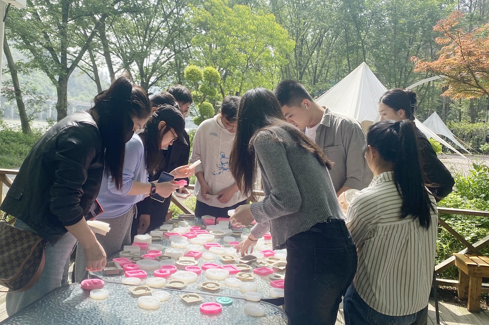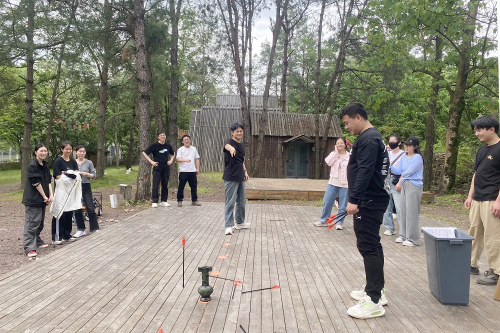 在此基礎(chǔ)上,開(kāi)始了手工活動(dòng)和趣味運(yùn)動(dòng)。在非遺拓染漂漆及DIY香薰蠟牌活動(dòng)中,大家相互交流制作的模具、圖案,營(yíng)造出輕松的氛圍,進(jìn)一步拉近彼此的距離。投壺、飛鏢軋氣球、拔河及桌游不僅讓大家在歡聲笑語(yǔ)中放松了身心,也讓新員工深刻感受到公司企業(yè)文化的魅力。