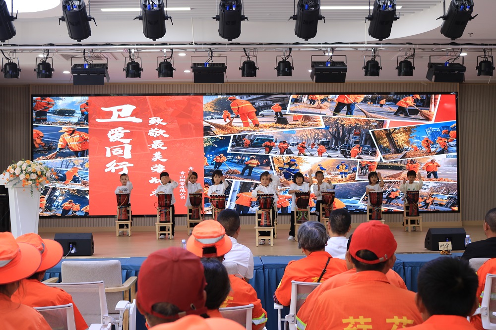 活動伊始,幼兒園小朋友帶來了充滿活力的非洲鼓開場表演,臺上孩子們笑容洋溢,用稚嫩卻有力的鼓點,為現場奠定歡快而溫馨的基調。開場表演后,幼兒園園長蔡建河上臺致辭,他表示此次活動旨在引導孩子們從小樹立尊重勞動、感恩奉獻的意識,并對環(huán)衛(wèi)工人致以最誠摯的感謝。