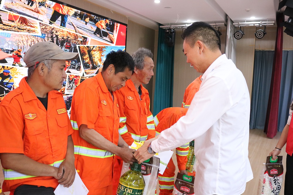 為表達對環(huán)衛(wèi)工人的關懷,青山鋼管志愿者服務隊和孩子們將精心準備的慰問品送到環(huán)衛(wèi)工人手中,除大米、食用油、水杯等日用品外,還特別附上孩子們精心繪制的祝福賀卡,童真字跡間流淌著對勞動者的真摯敬意。