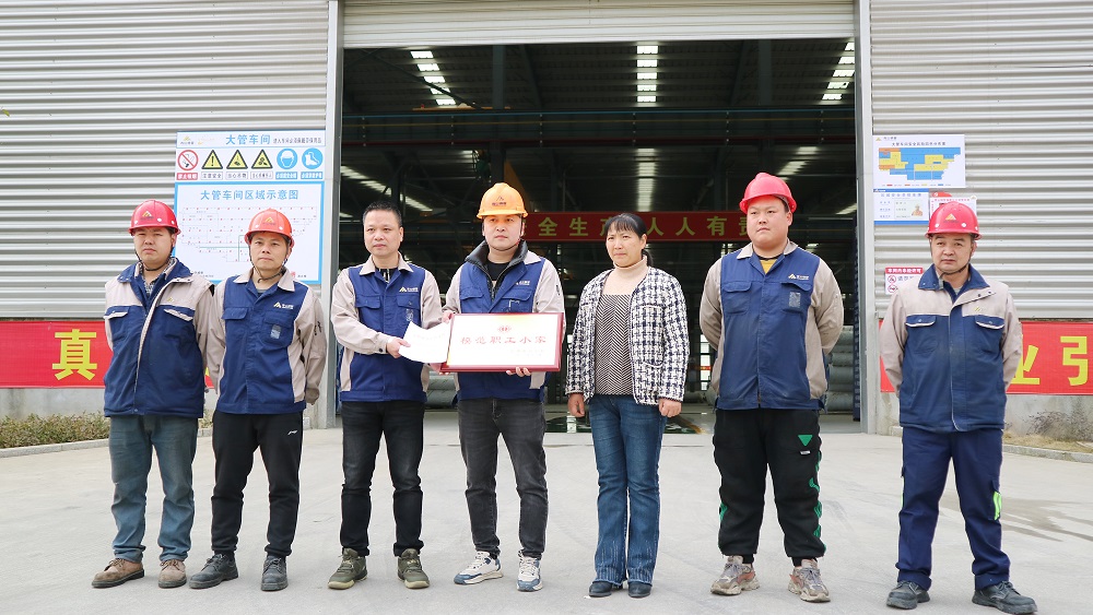 2月24日上午,周寧縣總工會(huì)黨組成員、經(jīng)審委主任楊自嬌一行赴青山鋼管有限公司福建分公司為焊管事業(yè)部大管車間工會(huì)小組頒發(fā)“寧德市模范職工小家”榮譽(yù)稱號(hào)牌匾,公司常務(wù)副總經(jīng)理、工會(huì)主席何建珍,焊管車間主任、工會(huì)組織委員趙威俊等參加授牌儀式。