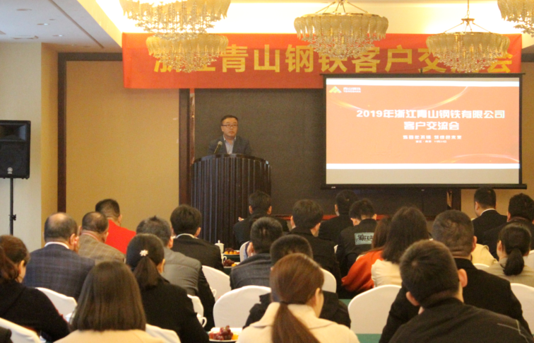 林平首先發(fā)表致辭,他指出:青山鋼鐵一直奉行敢為人先、廉潔敬業(yè)的發(fā)展理念,視理念創(chuàng)新、制度創(chuàng)新、工藝創(chuàng)新為不斷前行的動(dòng)力,敢想敢干,推動(dòng)企業(yè)的快速發(fā)展。在即將過去的2019年,青山鋼鐵在新品種開發(fā)的履歷表上又前進(jìn)了一大步,高附加值產(chǎn)品進(jìn)一步增多,特殊鋼品質(zhì)保障能力大大提升,其中易切削不銹鋼、冷鐓400系市場占有率穩(wěn)固提升;焊材品種進(jìn)一步豐富;模具鋼、氣閥鋼開發(fā)取得可喜進(jìn)步,青山品牌的氣閥鋼材料已經(jīng)成功運(yùn)用到汽油發(fā)動(dòng)機(jī)和柴油發(fā)動(dòng)機(jī);95Cr18、95Cr18Mo棒線材已成功開發(fā)并得到客戶的認(rèn)可;雙相不銹鋼2205,超級(jí)雙相32750線材,雙相螺紋鋼、六角異形不銹鋼、電渣工藝生產(chǎn)出來的醫(yī)用不銹鋼材料是今年推出的一張張新名片。