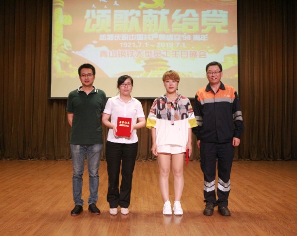 姜文寶首先致辭,他向各位壽星表示誠摯的祝福,并祝愿祖國更加繁榮富強。在黨的98歲生日來臨之際,借著公司這個特殊的舞臺,員工紛紛以歌舞、朗誦等方式表達對黨的祝愿及對同事的祝福。裝備部歐陽昆塔演唱的《相信自己》拉開了晚會表演的帷幕,安環(huán)部、采購部員工朗誦的《七一獻詩》更是點燃了整個晚會的現(xiàn)場氣氛,行政人事部鄧遠兵演唱的《烏蘇里船歌》讓現(xiàn)場不少觀眾表示“開口跪”,手語舞《感恩的心》、合唱《大中國》、歌伴舞《我愛你中國》等節(jié)目讓人應(yīng)不暇接,現(xiàn)場掌聲不斷。由公司領(lǐng)導組成的評委組為各個節(jié)目評分,最終行政人事部的歌伴舞《我愛你中國》獲得一等獎,獨唱《龍的傳人》、《烏蘇里船歌》獲得二等獎,手語舞《感恩的心》、朗誦《七一獻詩》、獨唱《青藏高原》獲得三等獎,晚會表演結(jié)束后公司領(lǐng)導為獲獎人員頒發(fā)了證書及獎勵。晚會期間穿插的抽獎環(huán)節(jié)給幸運兒帶來了冰箱、電飯煲、電風扇、夏涼被等實用的獎品。20時30分,晚會落下帷幕,公司為所有壽星分發(fā)了精美的生日禮物和蛋糕。
