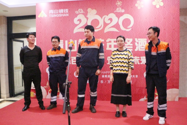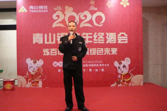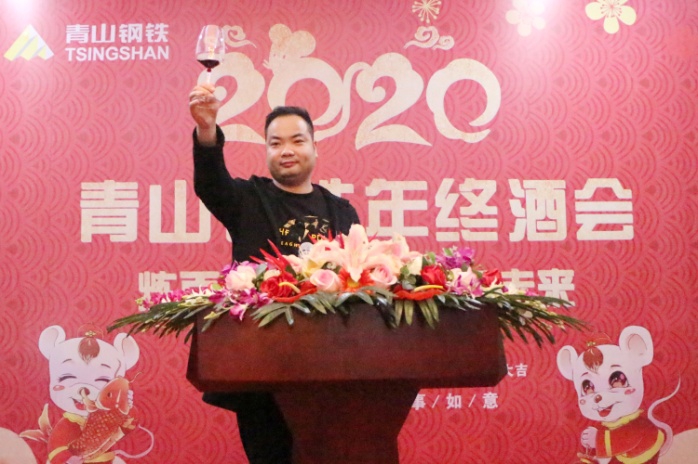 酒會伊始,沈亮致辭,他代表公司向關(guān)心和支持公司發(fā)展的各位嘉賓表示親切的問候,向一年來在各工作崗位上認真謀劃、親力親為的同事表示衷心的感謝,向在公司任勞任怨、為青山發(fā)展奉獻十五余載的老員工們致以崇高的敬意。他指出:在青拓集團的正確領(lǐng)導下,公司通過引進先進設(shè)備、加強基礎(chǔ)建設(shè)、合理整合資源、調(diào)整產(chǎn)品結(jié)構(gòu)、提升產(chǎn)品附加值、加大產(chǎn)品開發(fā)力度等一系列有效措施,積極應(yīng)對市場形勢,與時俱進更新發(fā)展觀念,進一步加快轉(zhuǎn)型升級步伐,圓滿地完成了2019年的工作任務(wù),保持了良好的發(fā)展態(tài)勢。成績屬于過去,未來催人奮進,伴隨著2019年的完美收官,新時代的壯麗畫卷正徐徐展開。展望新的一年,市場競爭愈加激烈,公司將面臨更大的挑戰(zhàn),但是風險與機遇并存,希望公司全體員工繼續(xù)發(fā)揚敢為人先、迎難而上的精神,秉承“奮起、爭先、嚴謹、實干”的精神,再接再厲,繼續(xù)開拓,為實現(xiàn)新的目標而奮斗,為青山的發(fā)展壯大做出更大的貢獻!
