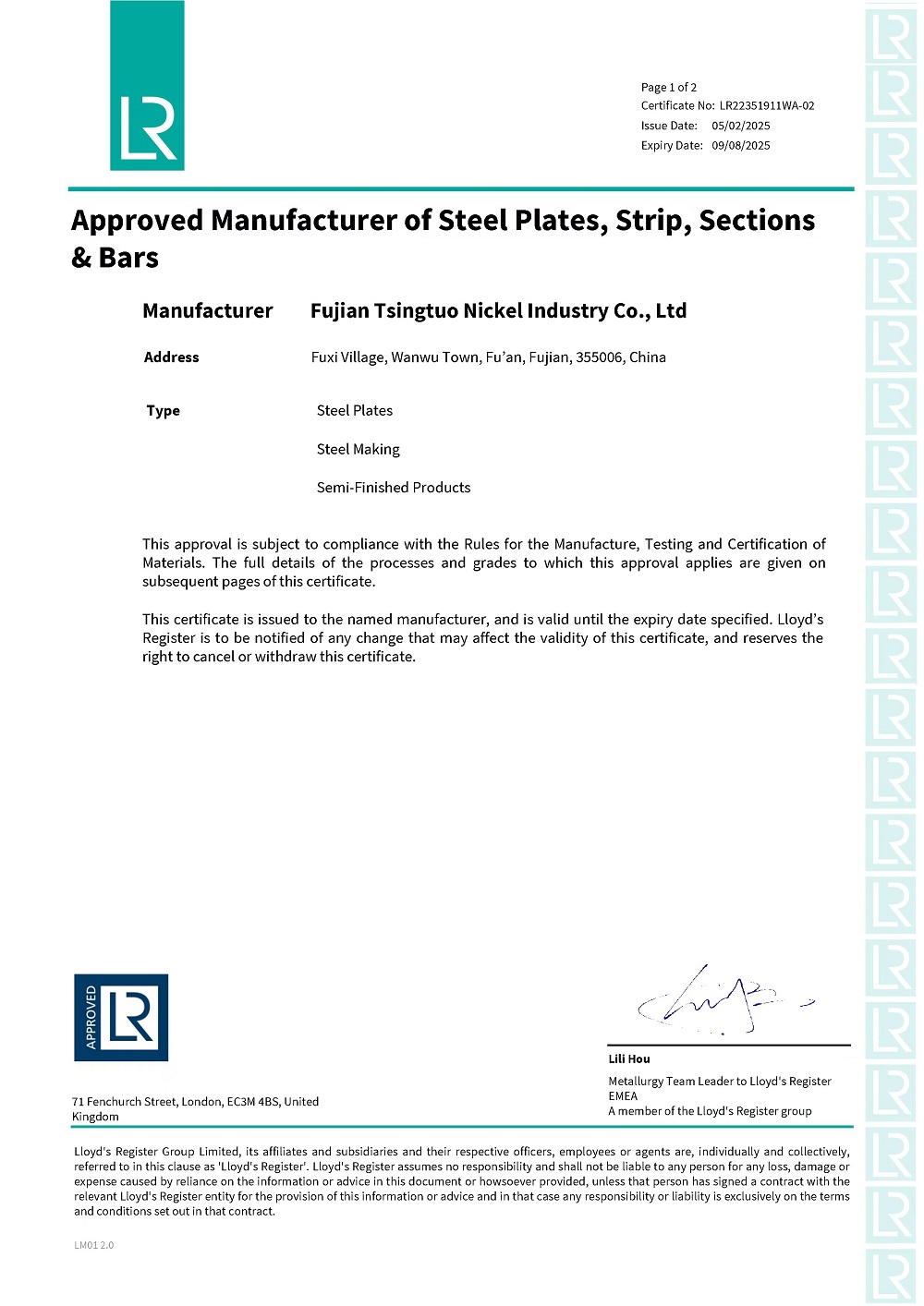 從中國CCS到英國LR認(rèn)證,每一個(gè)認(rèn)證背后,都是公司對(duì)產(chǎn)品質(zhì)量的嚴(yán)格把控與不斷超越。青拓不銹鋼中厚板將繼續(xù)堅(jiān)持研發(fā)創(chuàng)新,不斷突破,提升核心競爭力,同時(shí)通過更多權(quán)威機(jī)構(gòu)認(rèn)定,強(qiáng)化質(zhì)量保障,積極進(jìn)行市場布局,為國內(nèi)外用戶提供更多優(yōu)質(zhì)產(chǎn)品和服務(wù)。