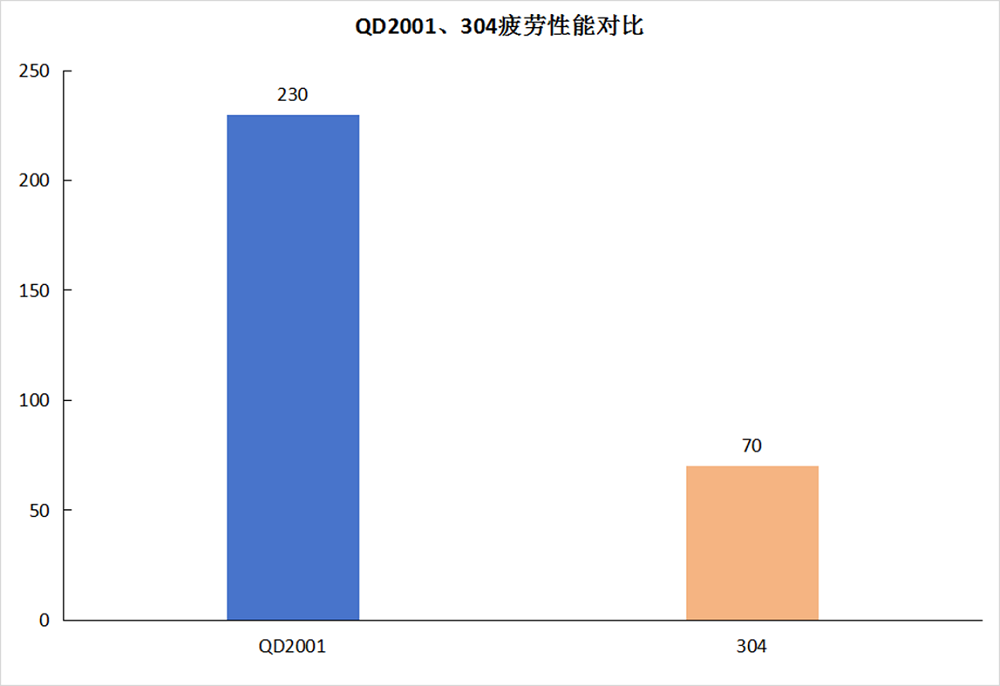 伴有更低的密度和熱膨脹系數(shù),高溫下材質(zhì)結構更為穩(wěn)定,應用體積輕便。同時,QD2001具有更高的強度和硬度,屈服強度是304級不銹鋼的近1.5倍,以及更高的彈性模量,可使電池緊固件更為輕質(zhì)、高強。
