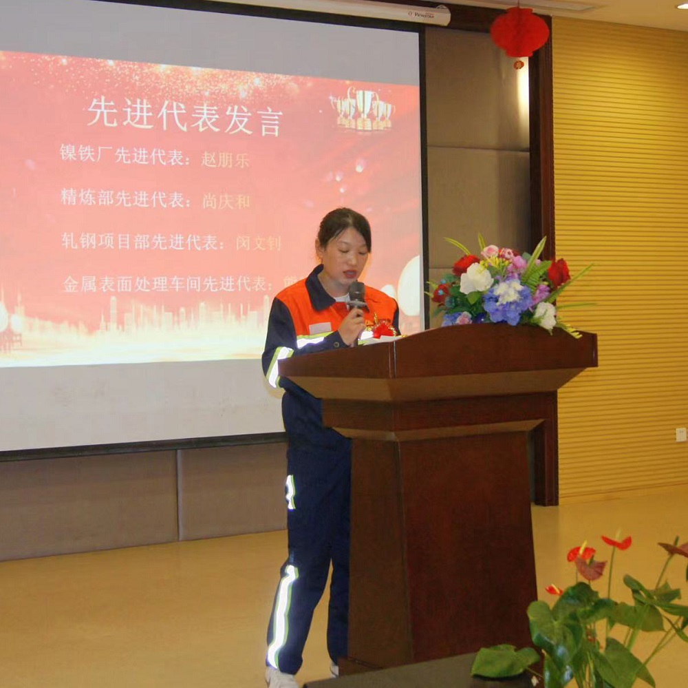 大會(huì)表彰了上半年各部門涌現(xiàn)的9位先進(jìn)管理者和83位先進(jìn)員工。鎳鐵廠趙朋樂、精煉部尚慶和、軋鋼項(xiàng)目部閔文釗及金屬表面處理車間熊曉燕4位先進(jìn)員工代表依次發(fā)言,他們結(jié)合自身實(shí)際,交流工作心得,紛紛表示會(huì)珍惜榮譽(yù)、再接再厲,充分發(fā)揮模范帶頭作用,為企業(yè)持續(xù)健康穩(wěn)定發(fā)展貢獻(xiàn)力量。