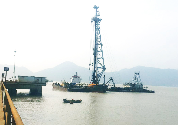 當(dāng)天秋高氣爽,青拓物流12#、13#泊位施工現(xiàn)場(chǎng),工程人員指揮打樁船找點(diǎn)定位,下午三點(diǎn),直徑1.2米、長(zhǎng)49米的組合管樁被緩緩地打入水底。隨著這艘打樁船緩緩打下的第一根樁,標(biāo)志著福州港白馬港區(qū)灣塢作業(yè)區(qū)12#、13#泊位工程水工作業(yè)順利開工,揭開青拓物流12#、13#泊位建設(shè)序幕。
