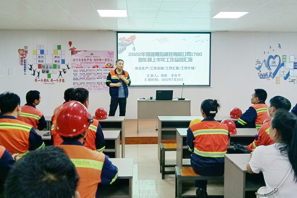 7月23日下午,福建青拓科技有限公司1780熱軋部組織召開(kāi)了2022年上半年安全生產(chǎn)總結(jié)暨下半年安全生產(chǎn)部署會(huì)議。本次會(huì)議客觀總結(jié)了熱軋部上半年的安全生產(chǎn)工作,剖析了當(dāng)前安全生產(chǎn)工作的形勢(shì),明確了下半年部門(mén)安全生產(chǎn)工作的重心和重點(diǎn)。部門(mén)領(lǐng)導(dǎo)、車(chē)間主任、安全員、班組長(zhǎng)共計(jì)60余人參加了會(huì)議。