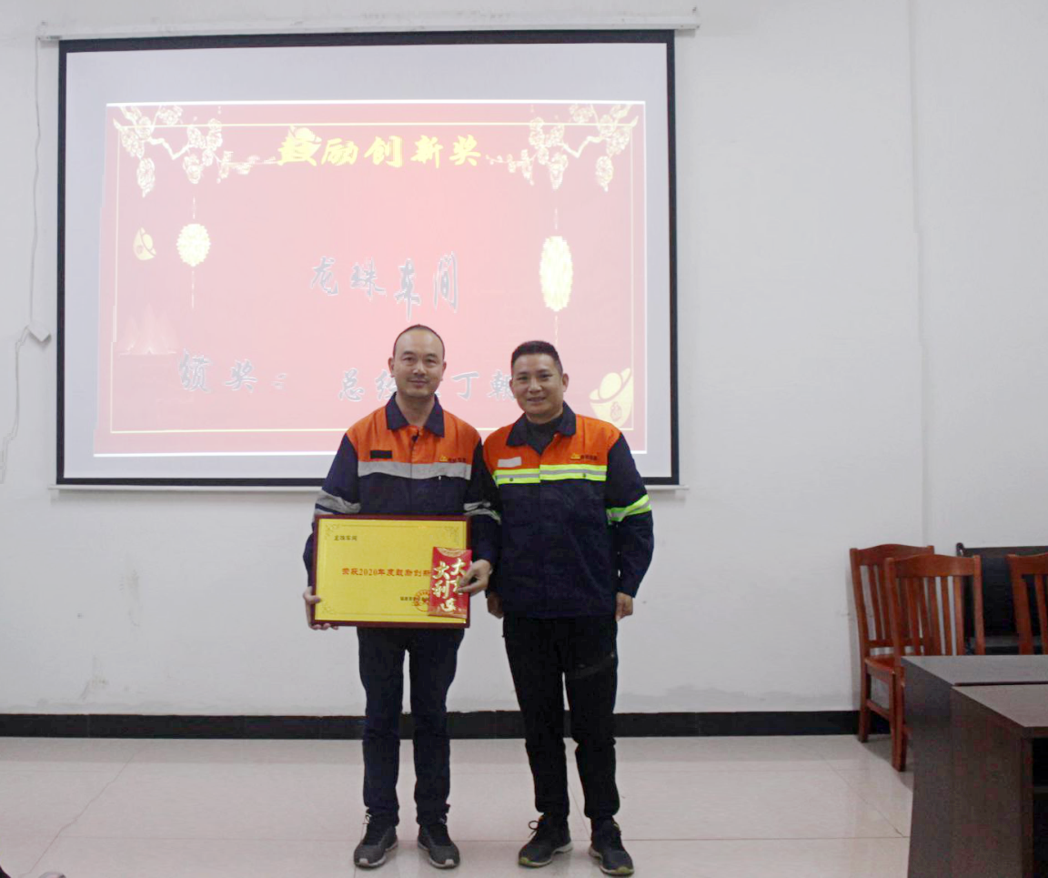 創(chuàng)新引領(lǐng)發(fā)展,創(chuàng)新激活生命力。作為制造業(yè)企業(yè),青拓設(shè)備重視創(chuàng)新鼓勵(lì)創(chuàng)新。會(huì)上,丁朝輝為龍珠車間頒發(fā)了“鼓勵(lì)創(chuàng)新獎(jiǎng)”,并指出:創(chuàng)新節(jié)約成本,創(chuàng)新帶來(lái)效益;希望各部門(mén)以龍珠車間為榜樣,積極推動(dòng)創(chuàng)新;2020年大家辛勤努力,2021年要為公司持續(xù)發(fā)展共同奮戰(zhàn)。