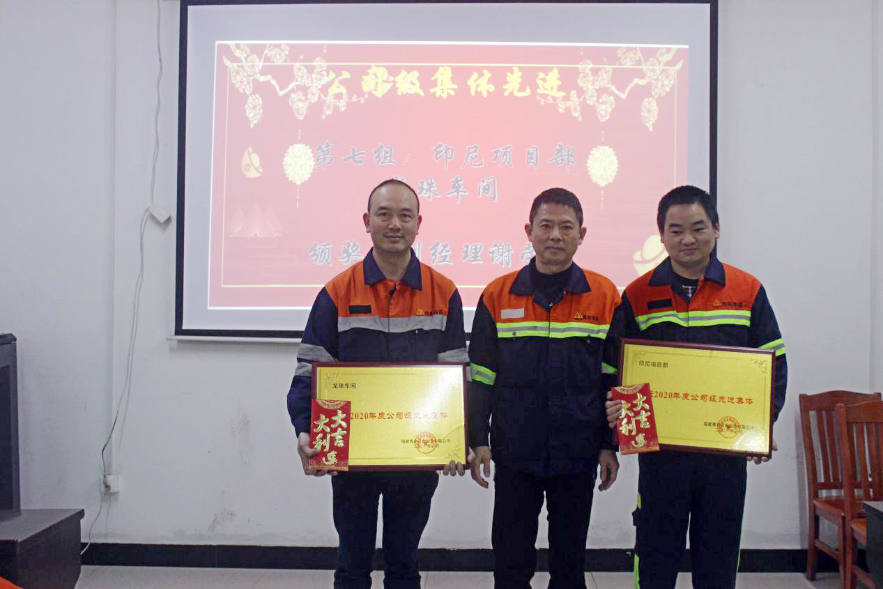 謝榮進(jìn)宣讀了先進(jìn)表彰決定,對(duì)先進(jìn)集體及個(gè)人寄予厚望。各部門(mén)領(lǐng)導(dǎo)為趙甲斗等10名先進(jìn)個(gè)人、印尼項(xiàng)目部等4個(gè)先進(jìn)集體頒發(fā)證書(shū)獎(jiǎng)牌。