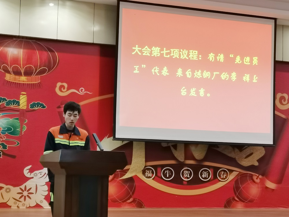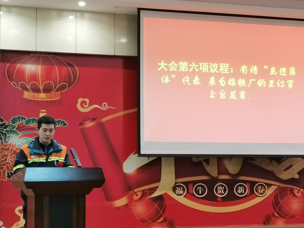 先進(jìn)集體代表鎳鐵部二期脫硫除塵班組的王紅軍、煉鋼部先進(jìn)員工代表李祥進(jìn)行發(fā)言。王紅軍表示:獲得先進(jìn)集體的榮譽(yù),離不開(kāi)脫硫除塵班組每位成員的努力,經(jīng)過(guò)技改調(diào)試,員工解決了生產(chǎn)工藝不成熟給調(diào)試帶來(lái)的各項(xiàng)難題,不斷改進(jìn)脫硫工藝,脫硫效率有了明顯提高;今后脫硫除塵班組將把榮譽(yù)作為新的起點(diǎn),不驕不躁,做到在線數(shù)據(jù)無(wú)超標(biāo),保障生產(chǎn)事故向零邁進(jìn)。