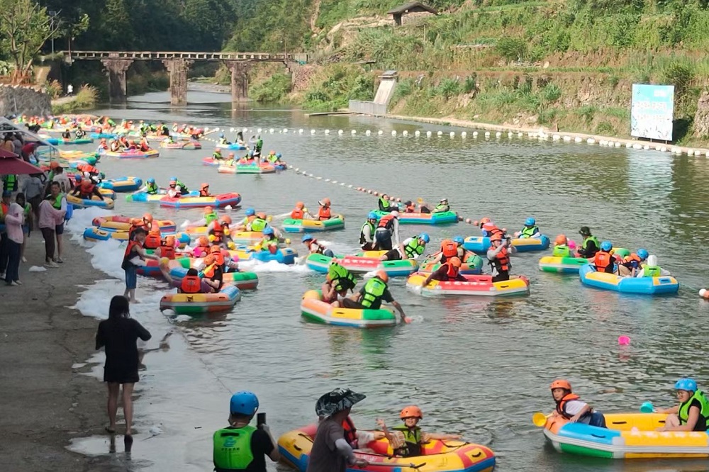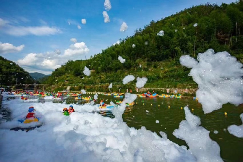 青山綠水與驚而不險(xiǎn)的漂流,動(dòng)與靜的結(jié)合相得益彰。第二站大家直奔“消夏”主題——浙龍峽漂流景區(qū),體驗(yàn)高空玻璃漂流、超長(zhǎng)峽谷河道漂流。山風(fēng)拂面、綠樹成蔭,在享受刺激漂流的同時(shí)感受大自然的寧?kù)o與和諧,這種親近自然的體驗(yàn)讓大家的心情徹底得到了放松。