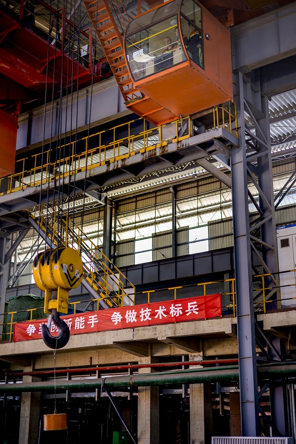 在青拓特鋼車間,行車比賽現(xiàn)場行車女工們巾幗不讓須眉,吊物、過桿等一系列操作一氣呵成,精湛的操作技術(shù)贏得現(xiàn)場陣陣掌聲。