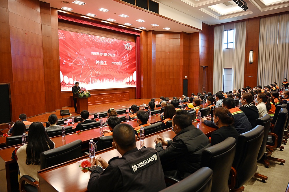 會(huì)上,鐘盛江作總結(jié)報(bào)告,他著重強(qiáng)調(diào)了2020年度集團(tuán)直屬各部門在科技創(chuàng)新、協(xié)同合作等方面的出色成績,對各部門各項(xiàng)工作成果給予了充分肯定,同時(shí)向各先進(jìn)集體和個(gè)人提出希冀,希望受到表彰的員工們在各自工作崗位上奮發(fā)有為,奮勇爭先,在青拓大平臺(tái)上不斷追求更高、更好成績,實(shí)現(xiàn)更大、更遠(yuǎn)目標(biāo)。