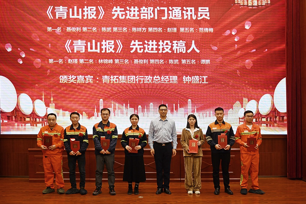 鐘盛江、周健、陳慶榮等領(lǐng)導(dǎo)分別為20個(gè)公司級先進(jìn)集體、58名公司級先進(jìn)個(gè)人、5名《青山報(bào)》先進(jìn)部門通訊員及5名先進(jìn)投稿人頒獎(jiǎng)。