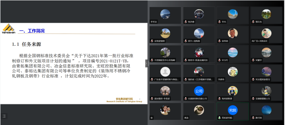 6月9日—10日,全國鋼標(biāo)準(zhǔn)化技術(shù)委員會鋼板及鋼帶分技術(shù)委員會通過網(wǎng)絡(luò)會議形式組織召開了《鉻-錳-鎳-氮系奧氏體不銹鋼冷軋鋼板和鋼帶》等四項行業(yè)標(biāo)準(zhǔn)審定會。青拓集團(tuán)研究院院長江來珠、質(zhì)量管理部部長石顯云等參會,冶金信息標(biāo)準(zhǔn)研究院黨委書記、院長張龍強(qiáng)在會上致辭并希望與會專家能夠集思廣益,對四項行業(yè)標(biāo)準(zhǔn)提出寶貴的意見,高質(zhì)量完成標(biāo)準(zhǔn)的制定工作。