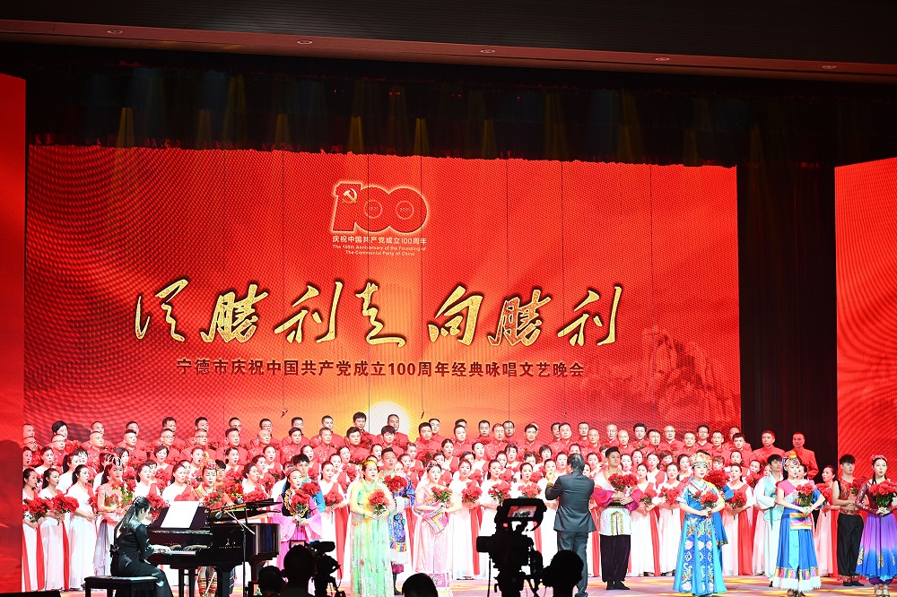 為隆重慶祝中國共產(chǎn)黨成立100周年,回顧黨的光輝歷史,謳歌黨的豐功偉績,進一步激勵全市廣大黨員、干部在黨史學習中感悟初心使命、激發(fā)奮進力量,近日,“從勝利走向勝利”經(jīng)典詠唱文藝晚會在寧德市高級中學禮堂舉行。作為全市唯一優(yōu)秀企業(yè)代表的青拓集團有限公司,派出50余名優(yōu)秀職工參加合唱方陣演出。