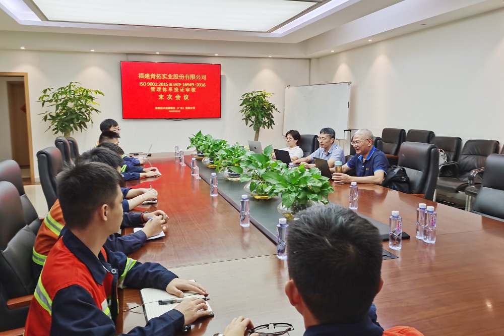 9月4日至8日,萊茵技術(shù)監(jiān)督服務(wù)(廣東)有限公司審核組對青拓集團(tuán)有限公司、福建青拓實業(yè)股份有限公司、福建青拓科技有限公司進(jìn)行了為期五天的IATF16949 & ISO9001質(zhì)量管理體系換證審核。青拓集團(tuán)研究院院長江來珠、青拓科技總經(jīng)理王晉、青拓實業(yè)股份總經(jīng)理李學(xué)強(qiáng)、青拓冷軋科技副總經(jīng)理蘭亮、青拓集團(tuán)行政部副總經(jīng)理劉永清及產(chǎn)品開發(fā)設(shè)計、生產(chǎn)、采購、銷售、人力資源等各部門部長參加會議。