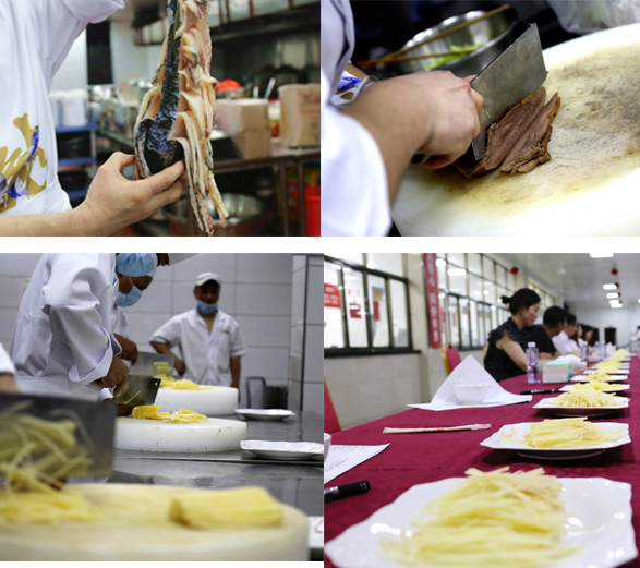 本次大賽經(jīng)初選后共有18名選手參賽,參與指定菜及創(chuàng)意菜兩個(gè)部分展示,指定菜為切土豆絲,考驗(yàn)選手的刀工技術(shù),創(chuàng)意菜為自行發(fā)揮、創(chuàng)意制作兩道菜,評委根據(jù)核定時(shí)間、創(chuàng)意、色澤、刀工、口味等方面進(jìn)行綜合評分。
