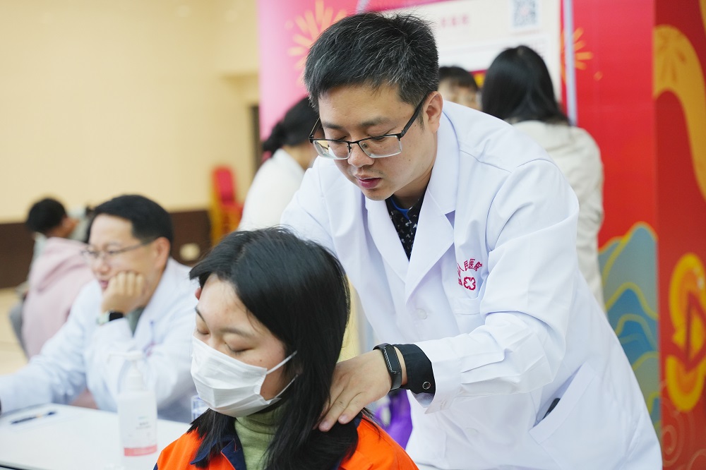 本次義診設(shè)立“診療+篩查+體驗+宣教”四位一體服務(wù)體系:各科專家團隊現(xiàn)場問診;婦科團隊開展免費乳腺彩超及宮頸癌篩查,為女員工構(gòu)筑“兩癌”防護屏障;中醫(yī)特色診療區(qū)提供耳穴壓豆、平衡火罐等中醫(yī)護理體驗,讓員工切身感受中醫(yī)藥文化魅力;健康檢測區(qū)域同步進行血壓血糖檢測、骨密度篩查及女性健康、艾滋病防治宣教,切實將健康關(guān)愛送到員工心坎上。