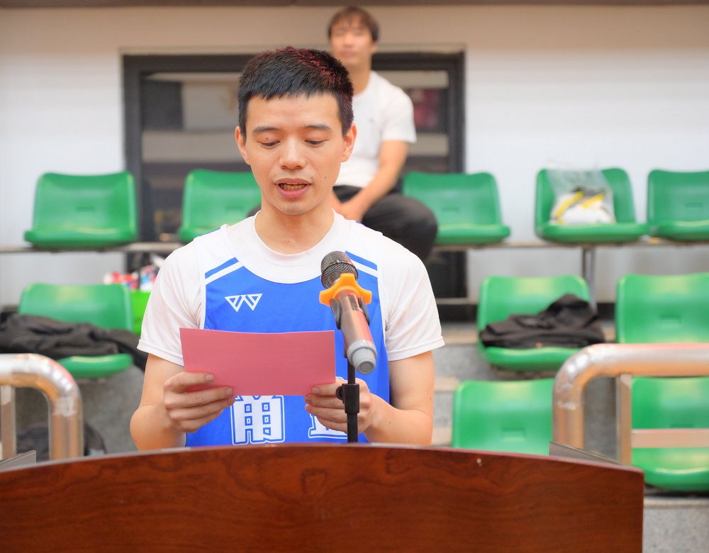 裁判員代表謝哲敏和運(yùn)動(dòng)員代表蘭浩鵬分別莊嚴(yán)宣誓,并預(yù)祝第十二屆籃球聯(lián)賽取得圓滿成功。
